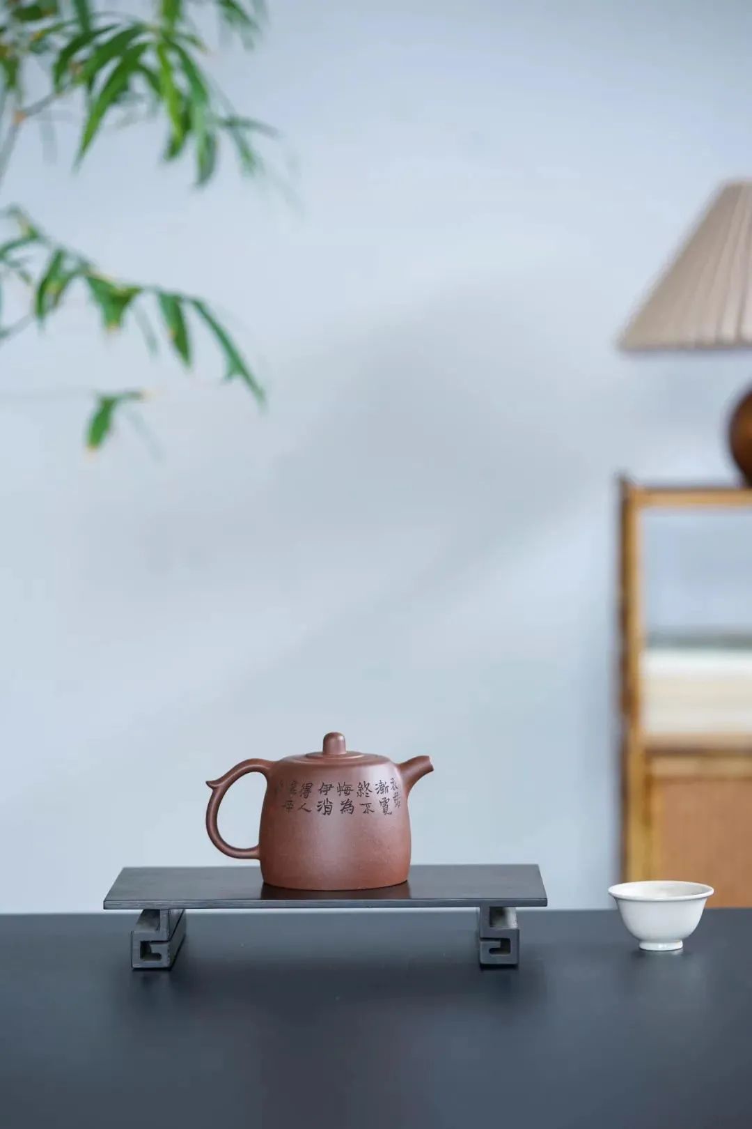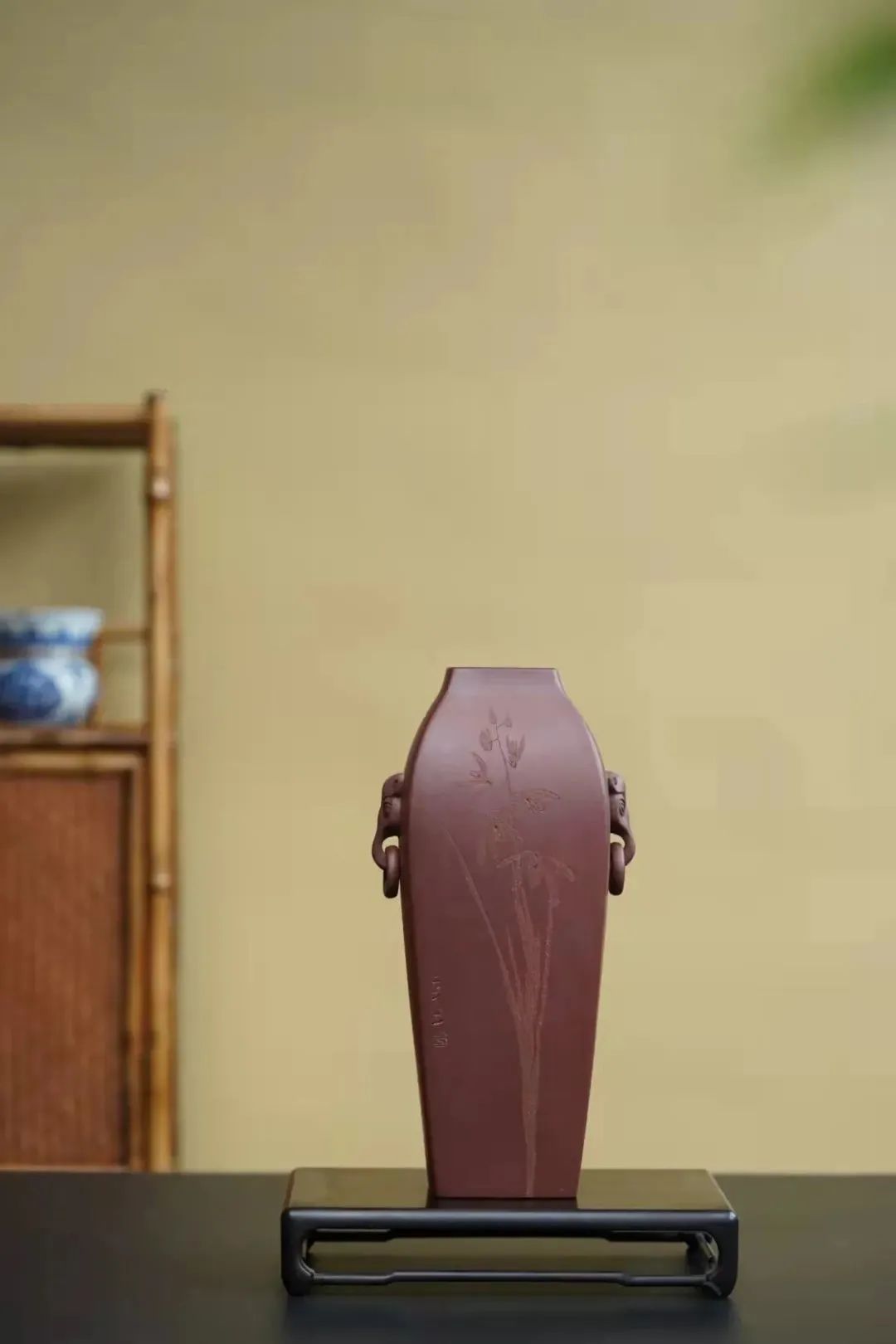 《紫砂象鼻瓶》紫泥 何兮绘 陈一寻刻 王文澄制