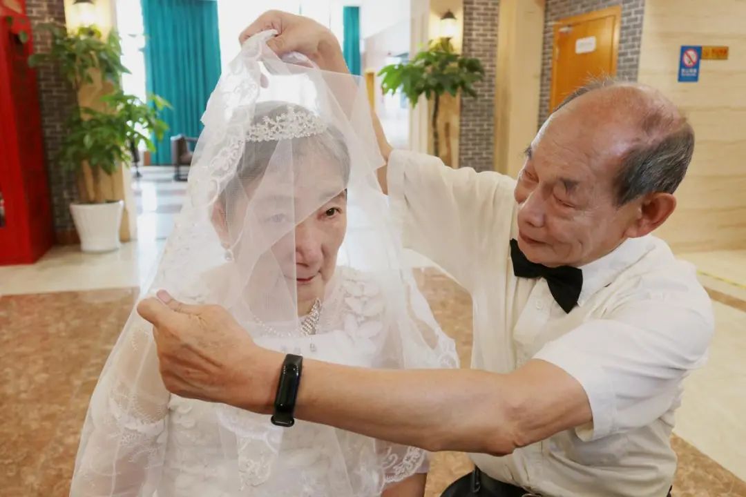 如今的耄耋老人也曾是热恋的情侣,只因在那个年代条件不允许,他们没有机会拍下婚纱照留念。敬老院就通过一场充满甜蜜仪式感的活动,帮老人们穿越时空,回到年轻时代。