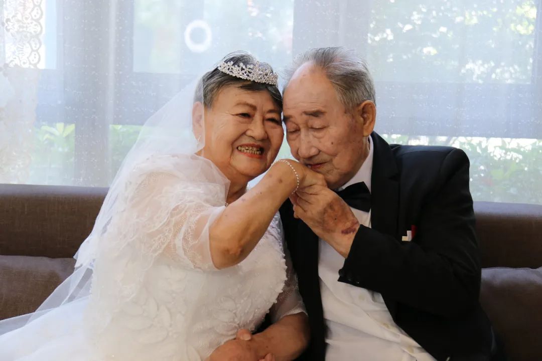 如何让长者跳出年龄界限,乐活每一天?彩虹湾老年福利院从未放弃帮助老人探索生活中的美好和浪漫。今年七夕前,敬老院工作人员采购道具,邀请14对长者夫妻拍摄结婚照。