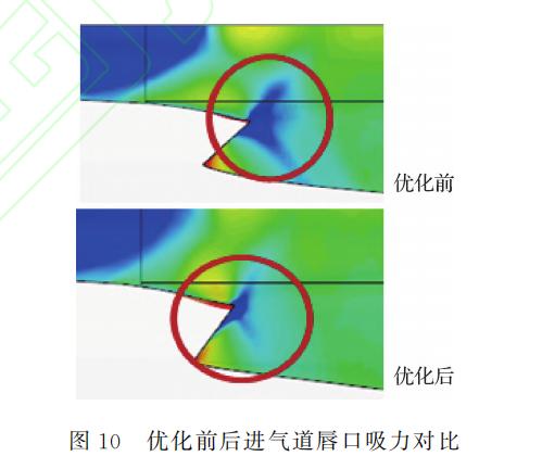 除了进行提升升力的设计以外,新的舰载机还在飞机的各个细节上进行了减阻。新的五代机机头形面优化,座舱风挡前的过渡段变得更加平顺。而一些减阻手段则是反常识的,比如新的舰载机的座舱后部隆起,根据论文的说法这种隆起可以使前机身座舱之后膨胀波强度降低,进而导致跨声速阻力下降。此外该机在DSI进气道唇口形面等地方也作了相应的减阻处理。在进行多种处理以后,论文认为整机通过气动修型上的优化,实现了10%的气动减阻增益。这为新型舰载五代机日后更换动力系统后的良好超音速性能打好了基础。