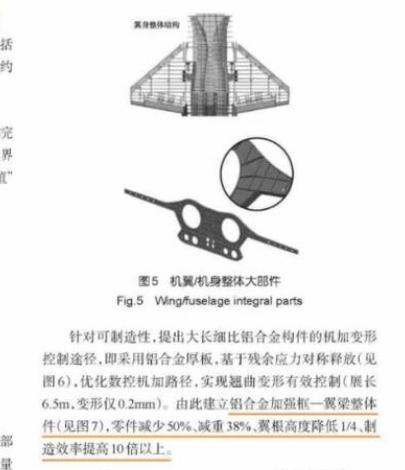 图源:社交媒体在满足升力和减阻以后,新一代五代机的另一个难关就是减重。减重素来是航空工业沈飞的强项,有关五代机舰载机减重的手段,航空工业官方微信号在研究所项目总设计师王向明的文章中已经介绍的差不多了。王向明提出了铝合金加强框-翼梁整体件设计/制造一体化方法,选用铝合金预拉伸厚板,通过残余应力对称释放、优化机加工艺路径,实现大长细比框-梁整体件机加翘曲变形有效控制。同比传统钛合金框梁组合结构,零件减少一半,减重超过1/3,从而大幅减轻结构重量,增加装载燃油,进一步保障了飞机推比和作战半径。