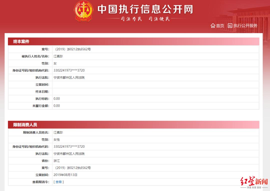 不过根据最新信息显示,江佩珍已经被撤销了限高令。