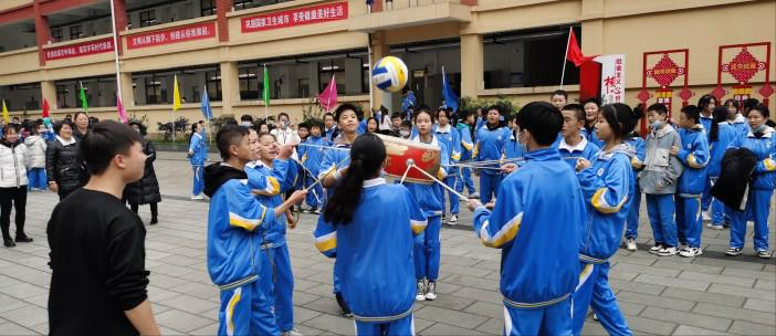 “鼓动人心”“滚雪球”和“师生呼啦圈传递”三项比赛项目,检验了大家的团队合作能力、同学们动作的协调性,同时增强了班级凝聚力。“蒙眼敲锣”比赛项目,检测了学生的方向判断能力、老师和学生之间沟通交流以及合作的默契度,同学们卸掉了平时学习上的压力,放松了紧张的心情,在轻松愉快又不乏激烈刺激的氛围中奋力争先,在齐心协力过关斩将的同时,增进了学生之间的友谊,也拉近了老师和同学之间的距离,赢得在场老师和学生的阵阵掌声和欢笑声。