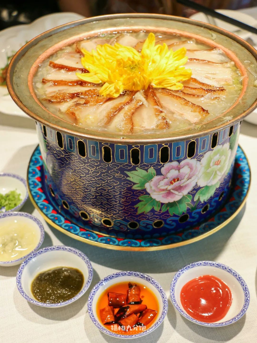 ▲北京聚德楼饭庄的酸菜炉肉菊花热锅还有一种高级吃法,不仅雅俗共赏,还很突出食材本味:芥末墩。