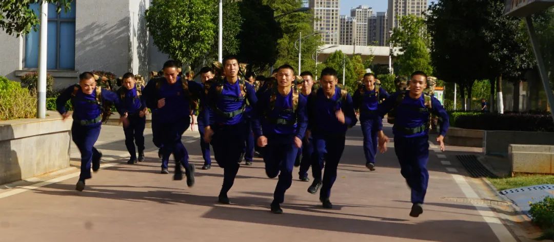 原来,曾就读于北部湾大学的石帅刚到昆明支队直属大队实习,就赶上了支队集训队的周考核。他跟着集训队开展负重五公里考核,刚从平原地区来到海拔近2000米的昆明,身体上还没完全适应,加上体能储备较为薄弱,这一趟五公里就成为了最让他难忘的五公里。刚过折返点,便感觉自己两腿发软,胃里翻江倒海,两臂僵硬,心里想着放弃,但看到在终点为他呐喊加油的战友,想起总队首长的嘱托:“任职第一步,一定要过好基层关、能力关”,石帅觉得,如果自己连基层日常训练都跟不上、坚持不住,以后有什么资格管理和帮助队友们!于是我下定决心决不能辜负首长的嘱托和队友期望,咬着牙,坚持跑完了全程。