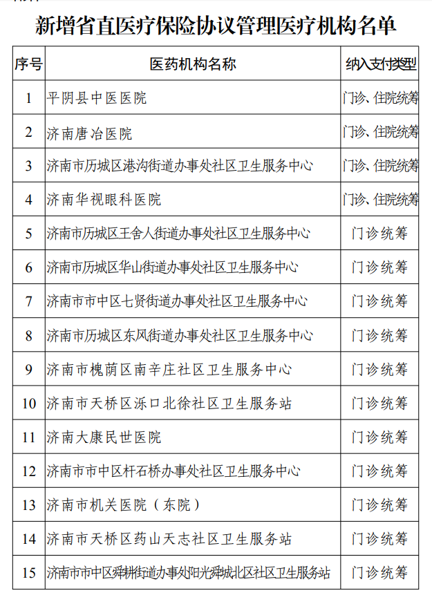 济南15家医疗机构确定为省直医保协议管理医疗机构