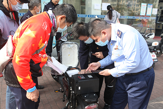 “一辆电动车想要上牌上路必须要有两个‘浙品码’,一个是电动自行车车架的‘浙品码’,一个是该车蓄电池的‘浙品码’。”据滨江区市场监管局质量监督管理科童鸿飞介绍,如果前来上牌的电动自行车车架、电池均有“浙品码”,那么交警部门通过“浙江e行在线”平台扫码之后,可以直接为车辆上牌;如果没有“浙品码”,市场监管工作人员会核对车辆的合格证书、购买发票,上传至“浙江e行在线”平台,之后交警部门通过“浙江e行在线”平台扫码,核实信息后,还是可以为车辆上牌。