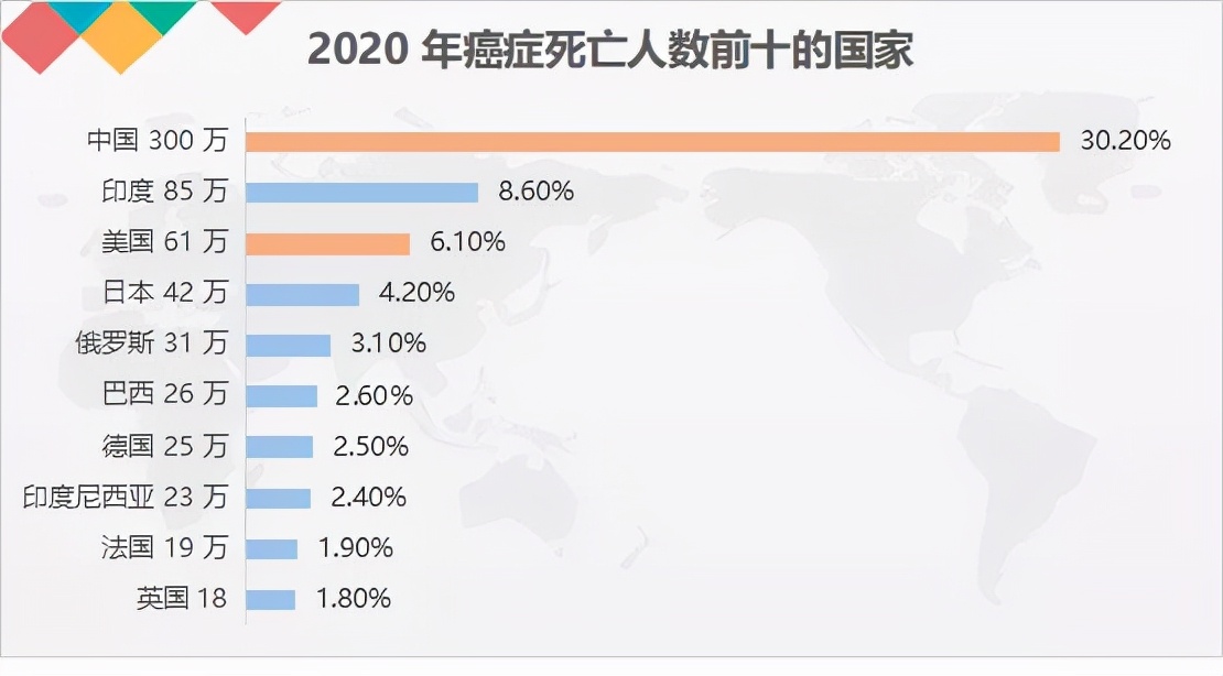 作为全球人口第一的国家(第七次人口普查显示14亿),癌症发病率高也是说得通的。那我们一起来看看下面这组数据