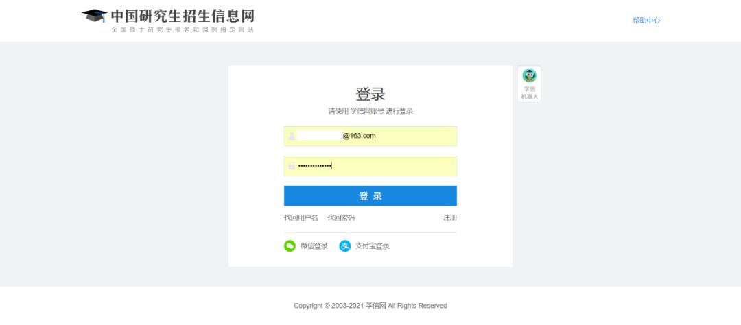进入登录页面后,输入本人网上报名的学信网账号、密码即可登录系统。