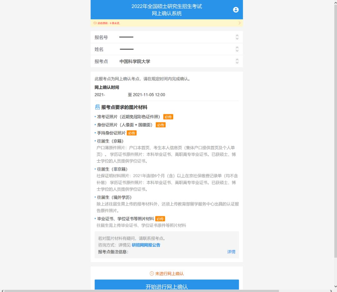 考生按照《1188中国科学院大学考点2022年硕士招考网上确认公告》(点击可跳转)要求,提前做好报考材料的上传准备,同时确认期间请考生及时关注本考点相关通知,考点网上确认要求以正式系统开通后为准。