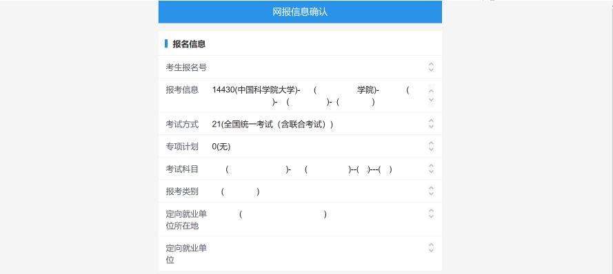 4.网报信息确认考生须确认网报信息,包括报名信息、基本信息、学籍学历、户籍档案、家庭主要成员、现在学习或工作单位、学习与工作经历、奖惩和作弊情况、联系方式、入伍信息等。特别提示:网上确认系统不提供报名信息修改功能。