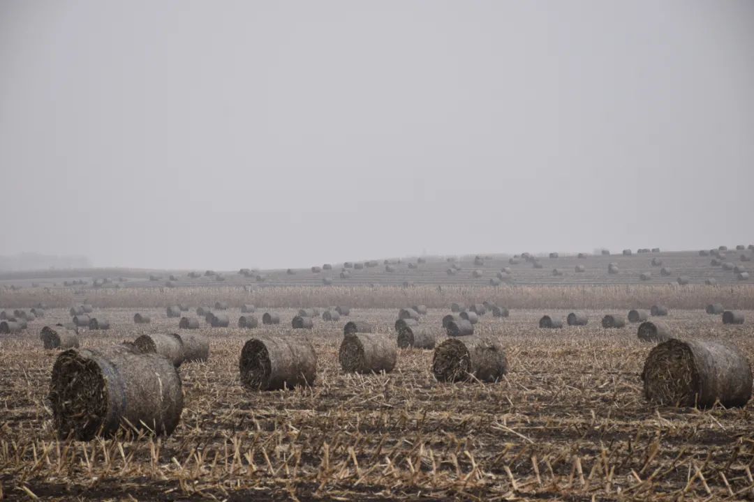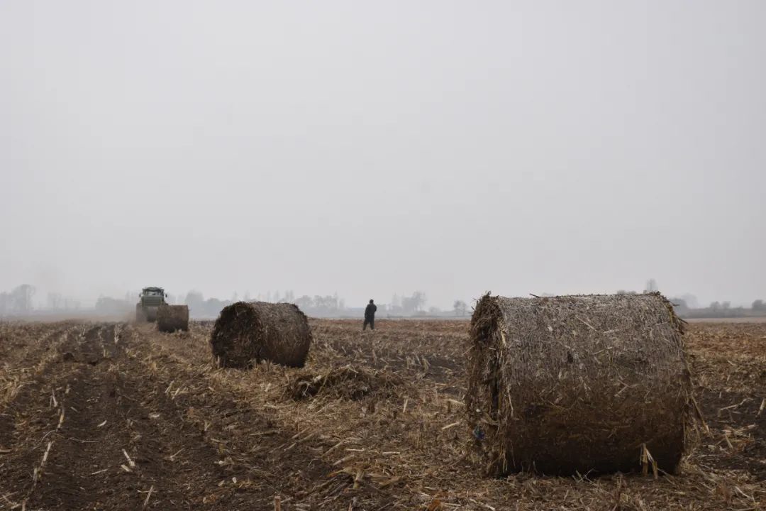 秋收落幕,木兰县柳河镇永利村开阔的原野上,一台台秸杆打包机在不停地奔跑,秸杆通过打包机后端的收集装置,进入机箱内,经过压缩后,一个个巨大的压缩“蛋”从打包机后部滚出,散布在田野上,构成了秸秆离田时节的别样风景。