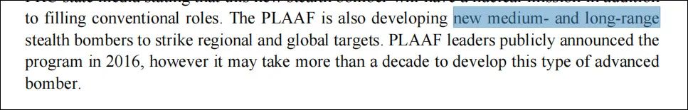 报告承认,解放军还在发展中型和远程的隐身轰炸机,以满足其打击需求在陆军系统《报告》还提及了“军改”对于解放军的编制体制重塑,《报告》称,“军改”使解放军成为一支更适合的联合作战的军队,提高人民解放军的整体战备水平,解放军陆军在不断入列新型装备,提高实战化演练水平,接受新的作战概念。这些有助于解放军扩大在海外行动的能力。