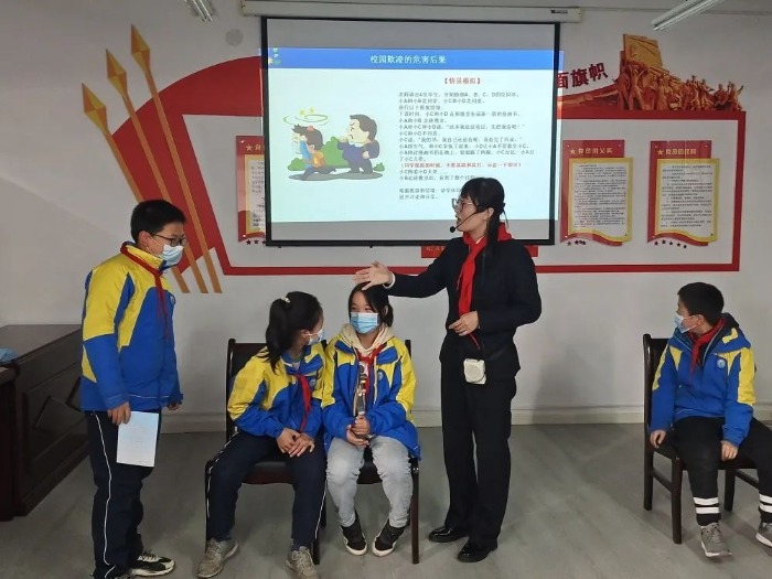 讲座结合学生实际和相关法律知识,采用观看动漫视频、配合漫画插图、情景剧模拟、教唱《防校园欺凌》儿歌、抵制校园欺凌宣誓等喜闻乐见的形式,以案释法,以法论事,深入浅出地进行讲解,让学生懂得了什么是校园欺凌、校园欺凌的表现方式、校园欺凌的危害,以及如何应对校园欺凌等,明白了同学之间只有互相尊重、互相关爱才能远离欺凌,和谐相处的道理。当然,在面对校园欺凌时,也不能一味忍让,保持沉默,而要大胆地说“不!”,并果断使用法律武器维护自身生命安全,让欺凌者受到应有的法律制裁。(法治宝鸡)