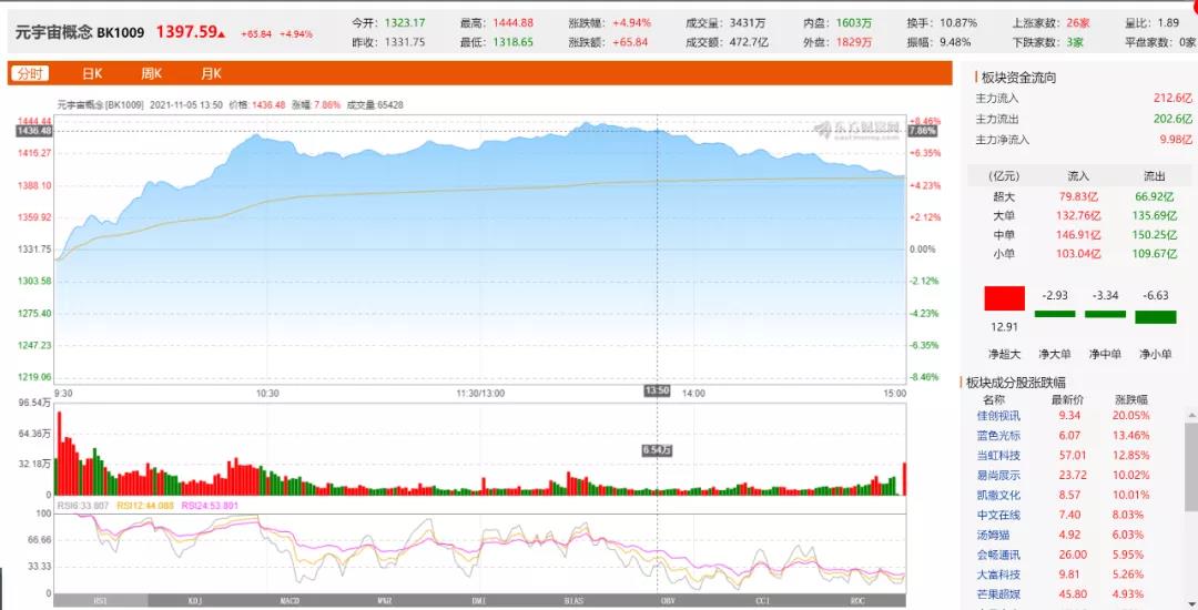 11月5日,沪指跌1%失守3500点,而元宇宙概念股却逆市大涨,博尽眼球。