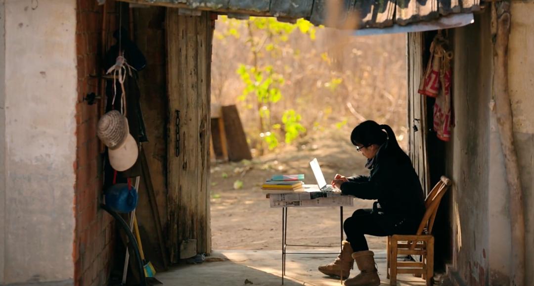 余秀华坐在屋外,不论站得多高,都再也无法目睹夕阳落下去的景象。