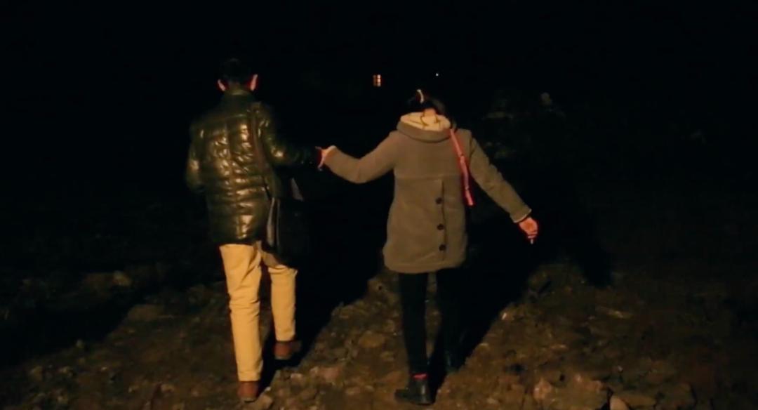 在回横店村的路上,余秀华走路不稳,尹世平牵起了她的手。