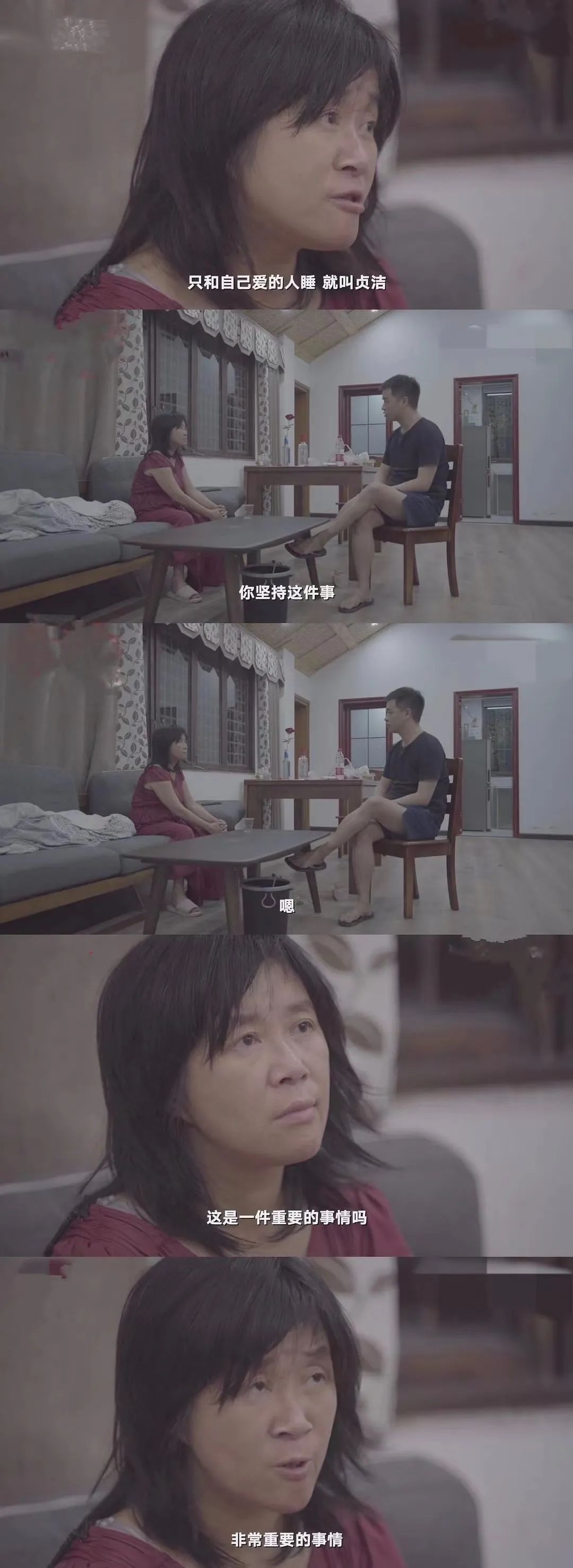 关于“贞洁”,她认为只有和自己爱的人睡,才叫贞洁,她坚持着这件事,并认为这是一件非常重要的事情。