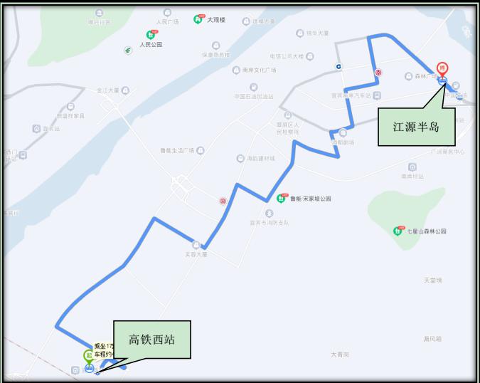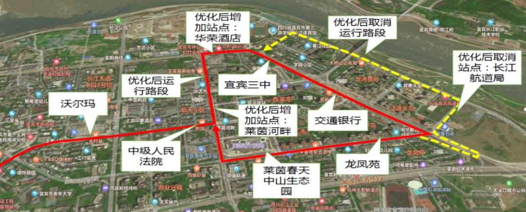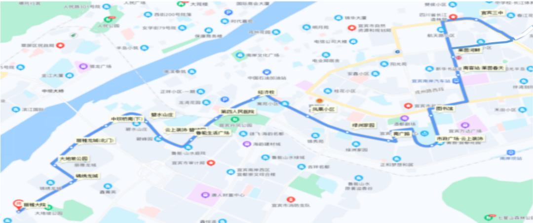 宜宾三中→人保财险→南门桥→滨江国际→三官楼→电厂→叙州区政务中心→鼎仁国际