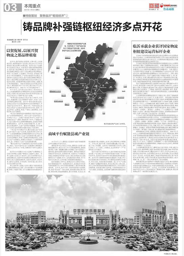 原标题:《聚焦临沂“枢纽经济”②铸品牌补强链枢纽经济多点开花》