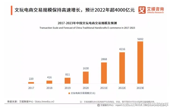 艾媒咨询数据显示,2020年中国文玩电商市场交易规模为1630亿元,预计2022年将超过4000亿元。