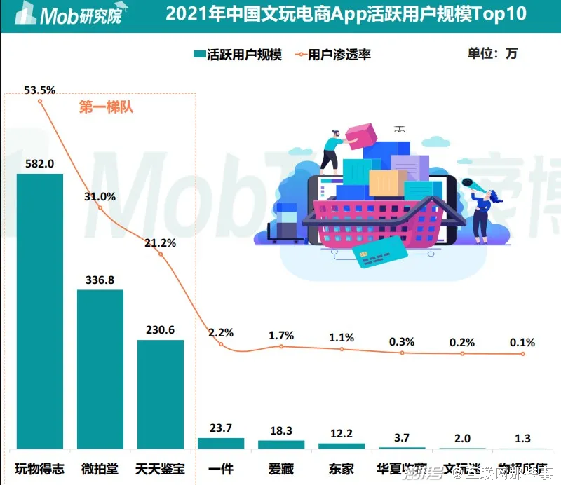 从用户心智占领上,用户渗透玩物得志、微拍堂、天天鉴宝分别为53.5%、31%、21.2%,活跃用户数量则分别为582万、336.8万、230.6万。