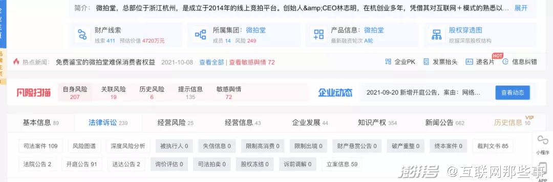 在天眼查上显示微拍堂也长年陷入司法纠纷中,目前已有多达239起法律诉讼,多是以被告人的身份应诉。