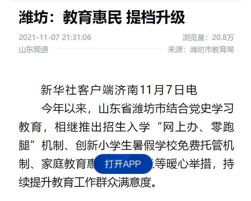 原标题:《媒体聚焦 | 新华社连续点赞潍坊教育!》