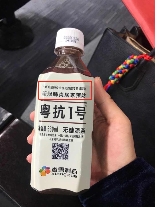 “‘粤抗1号’瓶装凉茶有居家预防疫情的作用。”