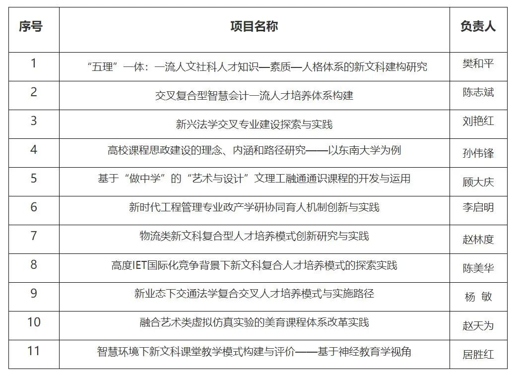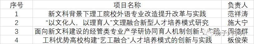 序号项目名称负责人1数字化转型背景下新兴文科专业体系构建与实践探索周毅2面向科技创新的“知识产权法+工科”复合型人才培养模式创新与实践方新军