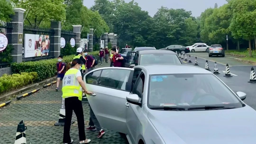 淅淅沥沥的雨中,一辆车停在校门口指定停车处,一位身穿绿马甲的年轻爸爸急忙走过去,打开车门,一只手举着雨伞,另一只手抱起没有穿雨鞋的孩子,直到把孩子安全护送到雨棚,才转身再回到自己的岗位,微笑着迎接另一个孩子……这位年轻爸爸只是顾村实验学校家长志愿者护校队的普通一员。