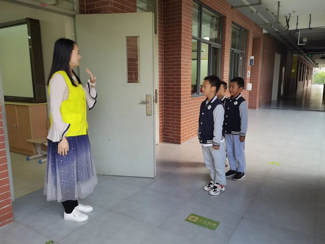 “海伟,现在家长接送学生还是不理想,你有没有什么更好的方法?”在全国文明城区迎检工作中,放学时段的校门口管理是一大难题,校长问姜海伟。“我来想想办法。”“你看,我们以前用的广场音响功率太小,护导老师的喊话被家长声音遮盖了,我建议在门卫装个广播系统?”“所有等待的家长都混在一起造成大面积拥挤,我建议在家长等候区再加一道护栏。叫到班级的家长才能进入到第二个护栏内。”“在学生等候区为每位学生画一个小圆点,整队时学生脚踩小圆点就可以快速整队了。”