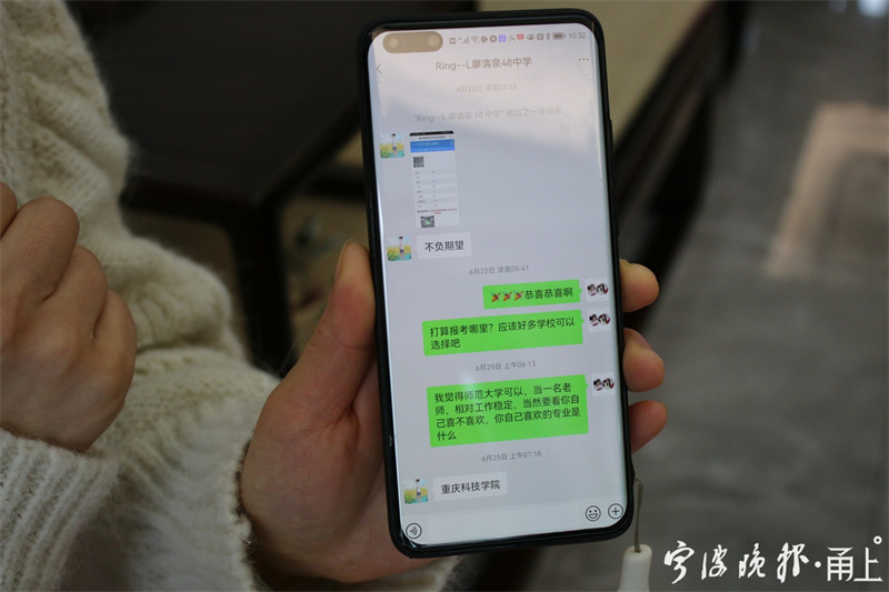 “当时高考成绩一公布,他就把成绩截屏发微信给我,我一看成绩不错,真的替他开心!”说起这件事时,王兰玲连忙展示当时的聊天记录。她还给廖青发了一个红包,以示鼓励。