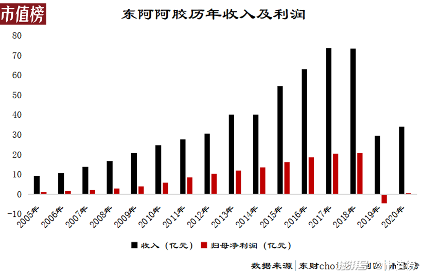 东阿阿胶在第二阶段待了很长的时间。从2018年开始,收入无法维持上涨,进入第三阶段,2019年,收入直接下降60%,宣告提价策略彻底失灵。