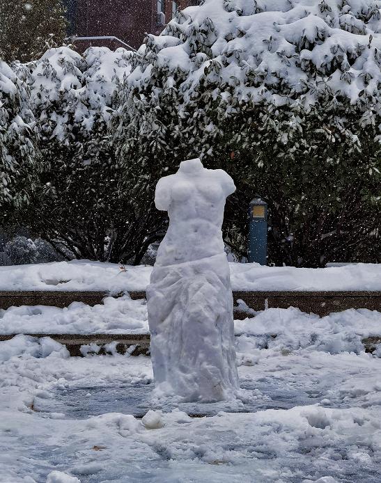 山东一高校学生堆冰雪版“断臂的维纳斯”引围观,网友:“堆雪人都卷起来了”