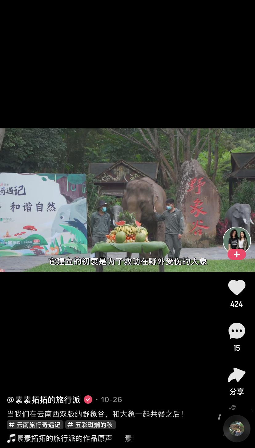 第三站,让我们跟随快手@素素拓拓的旅行派 的镜头来到地处西双版纳州府景洪以北22公里的野象谷,这里有云南最原生态的一面,也被誉为“人类与亚洲野象沟通的桥梁”。