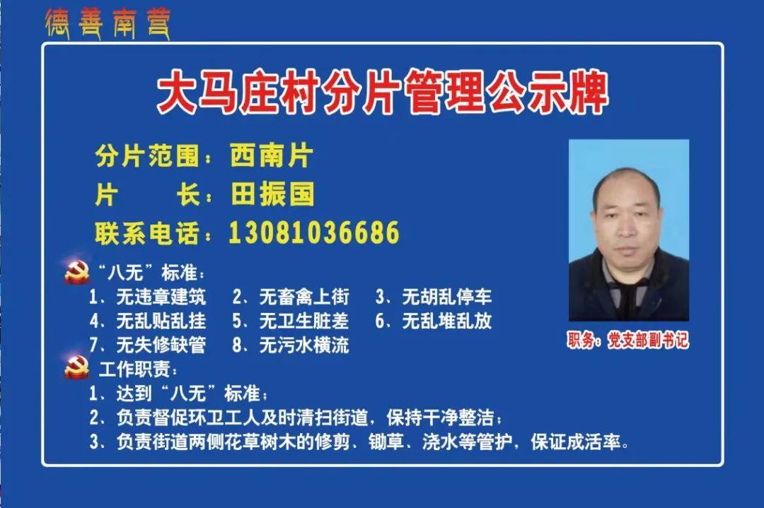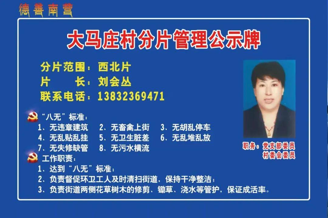 因为大马庄村是由5个村子组成的村庄,包含了30多个姓氏,120多条胡同。经过综合考虑,镇包村干部赵晓杰决定在大马庄村推行“门前三包”制度。