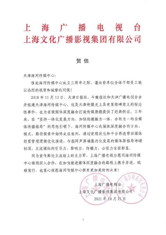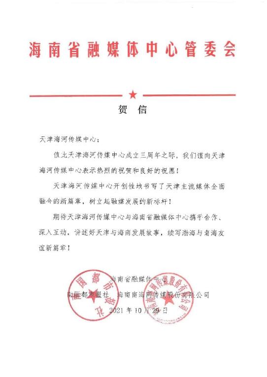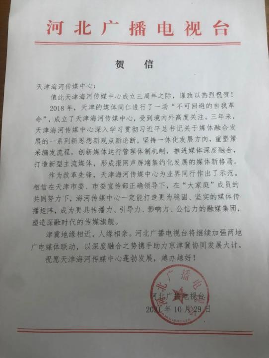 原标题:《全国媒体同贺 天津海河传媒中心成立三周年》