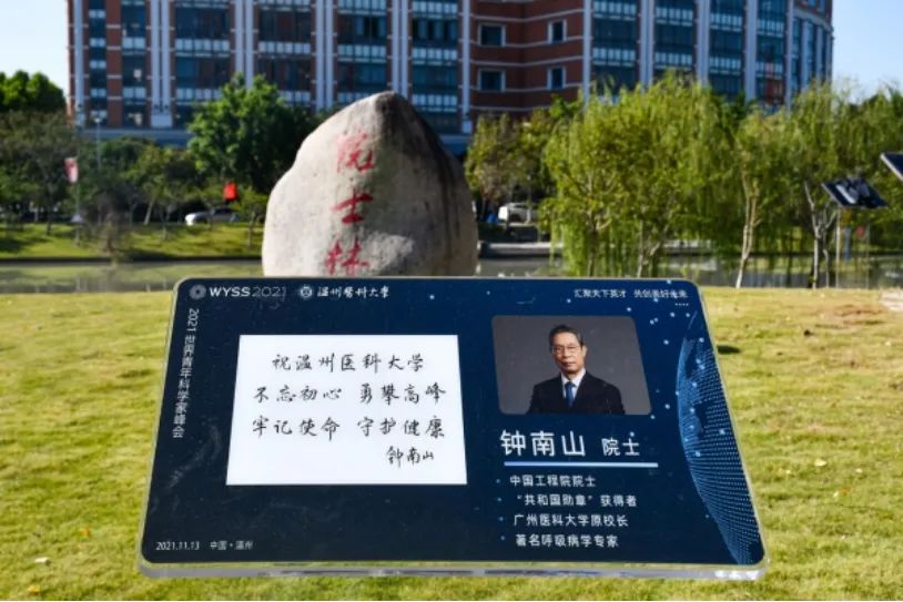 ▧ 温州医科大学“院士林”内,钟南山院士对温州医科大学留下祝福语。环球网 李孟鹏 摄