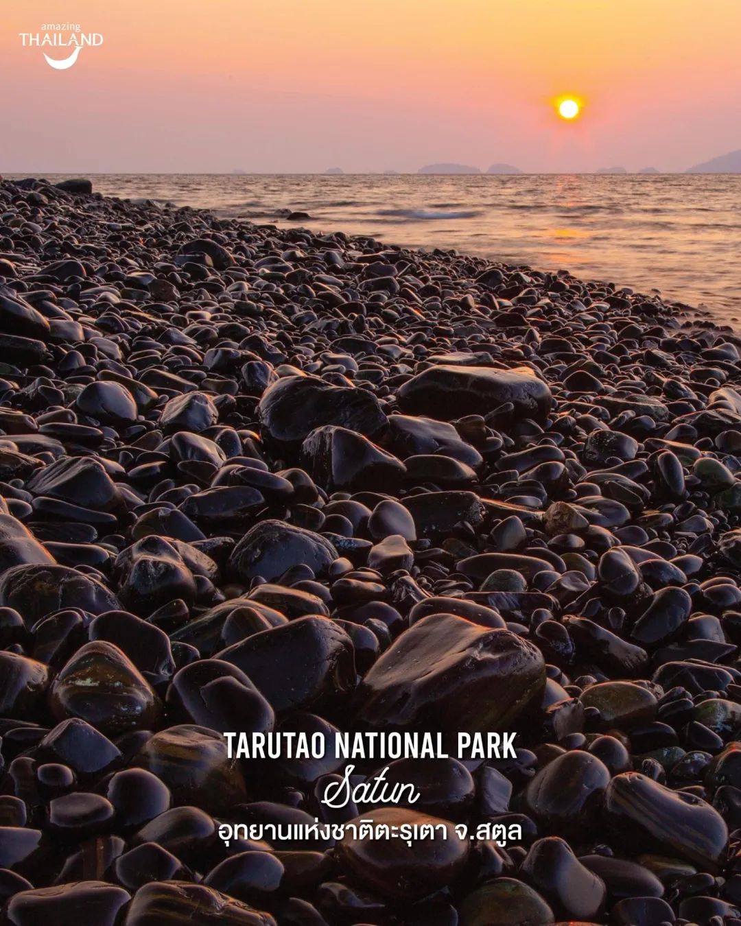欣安(Ko Hin Ngam)岛上均是黑色的圆形石头,形成一道自然奇观,经过海水冲刷的石头在夕阳的照耀下变得光彩熠熠,十分美丽。
