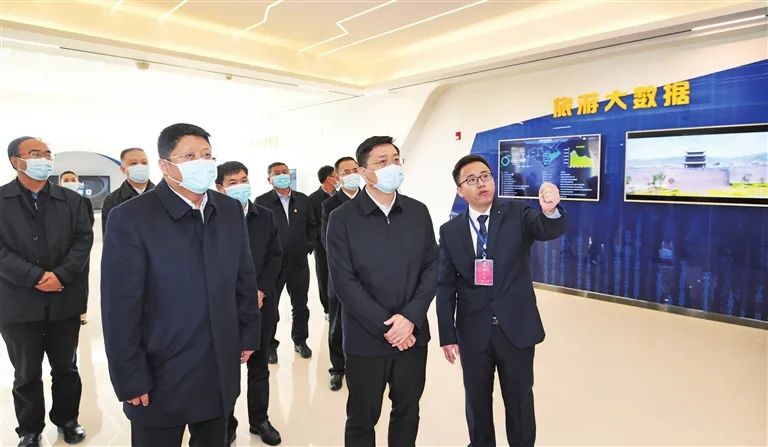 省委常委、副省长、市委书记韦韬在晋源区旅游大厦调研文旅产业发展情况。梁 琛 摄11月12日,省委常委、副省长、市委书记韦韬在晋源区调研时强调,要忠诚践行习近平总书记殷殷嘱托,全面落实省、市第十二次党代会精神,加强生态建设,推动文旅融合,集聚新兴产业,为全面再现“锦绣太原城”盛景贡献力量。市委常委、秘书长刘鹓参加。
