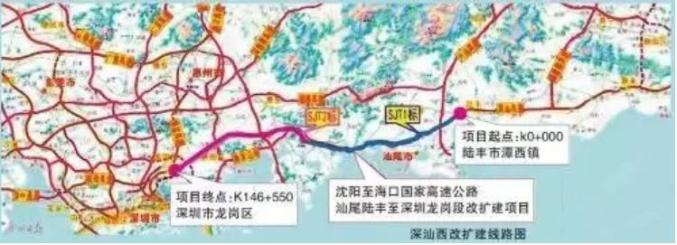 该项目起于陆丰,路线向西途经汕尾、深汕合作区、惠州,终于深圳龙岗区,全长约 146 公里,其中深汕合作区内长度 18.5 公里。