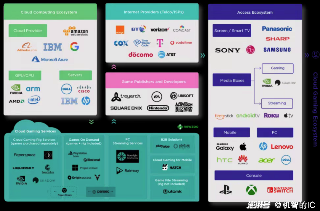 云游戏生态参与者,来源:Newzoo而云游戏服务平台也成为了各大厂商的必争之地。