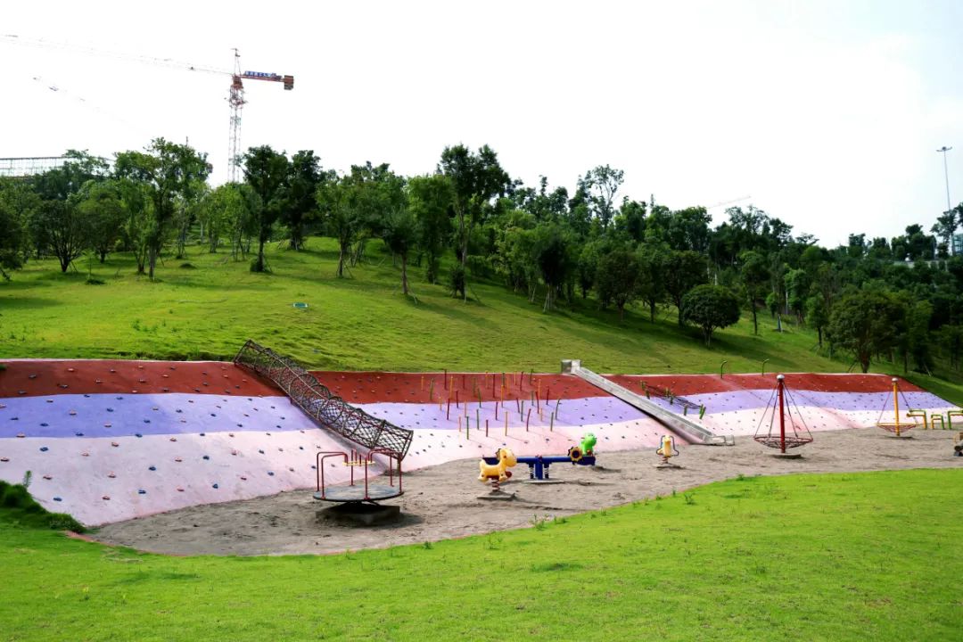沙子、秋千、滑滑梯、木马、跷跷板……这里的儿童乐园拥有众多游乐设施