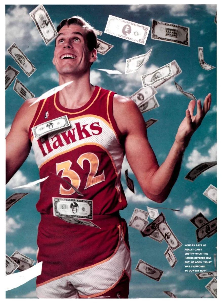 多年以后,沙奎尔-奥尼尔在一次采访中披露了自己走上篮球路的心路历程。他讲的这个人是琼-康卡克,7尺中锋,1985年首轮5号秀,他讲的这个事儿发生在1989年9月,老鹰给了康卡克一份6年1300万美元合同。