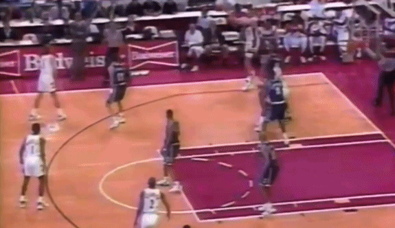 麦克-布朗,绰号“大熊”,不是那个后来的教练另一个擅长打人的内线约翰-塞利显然底气更足一点,他是1986年11顺位,身高2米11,打了三年球场均6.9分4.5板1.4盖帽3.2犯规,他的信心可能源于自己也是个替补中锋,也是个高顺位秀,数据也和康卡克相似,也可能是因为他身份不同,他可是尊贵的卫冕冠军活塞的替补内线!