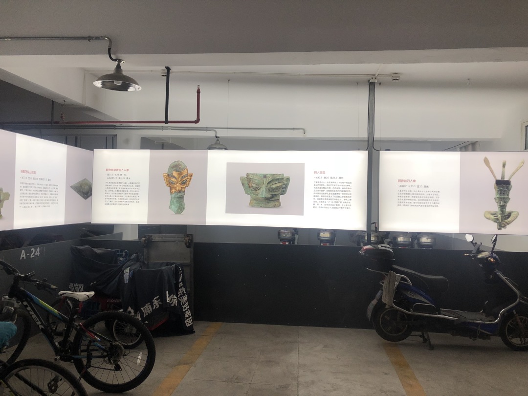 今年1月22日,许多准备骑车出行的陆家嘴东昌新村居民一进小区内的停车棚,就被内部景象给震住了:太阳神鸟金饰、铜兽面、石璧、铜瑗、玉璋……灯箱照明下,4000多年前辉煌灿烂的三星堆文化图片展呈现在眼前。这一展览作为上海大学博物馆“三星堆:人与神的世界”特展的公共教育活动,把“同款”展示内容带到陆家嘴的社区居民身边。