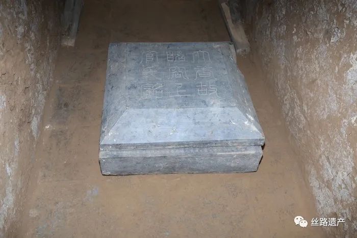 薛绍墓前墓室正视影像图初冬将至,前墓室到底,墓志露头了!这是一合边长73厘米的青石墓志,墓志盖已被翻动过。志石右上角压在被从后墓室拆下的石棺床立沿石的残件下,首题曰“大唐故右武卫大将军兼散骑常侍驸马都尉平阳县开国子薛公”,因为名字被遮挡,还不能判断这位薛驸马到底为谁。当读到“永隆二年授驸马都尉尚太平公主”时,《大明宫词》的BGM自动浮现,薛郎的面具已经揭开……