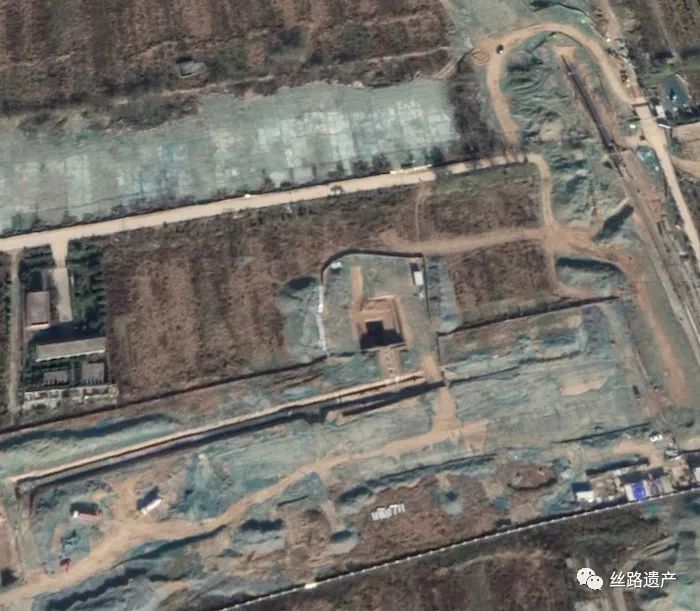 薛绍墓鸟瞰卫星图片2019年8月初,岩村1号墓的发掘正式开始。发掘过程中发现了一个特殊现象——该墓的第五天井面积远大于其他四个天井。起初考古队员们认为可能是第五天井上口塌陷所致,但经过清理后的第五天井上口特别规整,壁面整齐,并没有塌陷的痕迹,说明这个超大规模的“天井”是有意为之。经过与在它之前的第四天井和在它之后的墓室明圹的综合对比,我恍然大悟——它不是天井,而是一个墓室的明圹!这样的话,前期的判断就需要修正,这是一座4个天井的双室砖券墓。因为唐代双室砖券墓非常罕见,墓主不是开国功臣就是皇亲国戚,一定是史书中有记载的人物。洪渎原上发现的双室砖券墓屈指可数,有太平公主第二女万泉县主薛氏墓、太平公主亲家唐从心夫妇墓、李隆基外祖父母窦孝谌夫妇墓等,这些墓葬的规模和配置都超越了墓主生前的级别,是“极尽哀荣”的体现。那么,这座墓的主人又会是哪位重要人物呢?会不会与太平公主或李隆基有关?我们怀着忐忑不安的心情,等待墓志的出土。