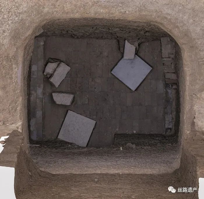 上官婉儿墓发掘地点鸟瞰考古发掘在8月初正式开始,所有的工作都按照程序按部就班地开展。我们发现从第四天井开始,墓葬的北半部分遭到了严重的破坏:第四、第五天井被一个形状不太规则的大坑所打破,这个坑垂直向下,在接近天井底部的位置水平向北深入,破坏掉了砖券甬道的拱顶和墙壁直通墓室。墓室被毁坏的惨不忍睹,顶部已完全塌掉,四面砖墙最高处仅余1.3米,墁地砖被揭的一块不剩,原本墓室西部棺床的位置被彻底铲平,墓室里没有一件随葬器物,棺椁和墓主人的遗骨不翼而飞。根据这种迹象,我们判断这十有八九是“官方毁墓”所造成的破坏。